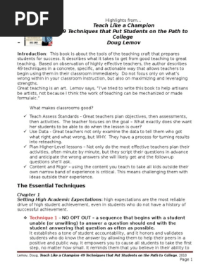 . Web Note that for each chapter this summary will provide more detail for one to two. TEACH LIKE A CHAMPION A summary of the 53 techniques. Web The students should be able to use the signals from their seat.
